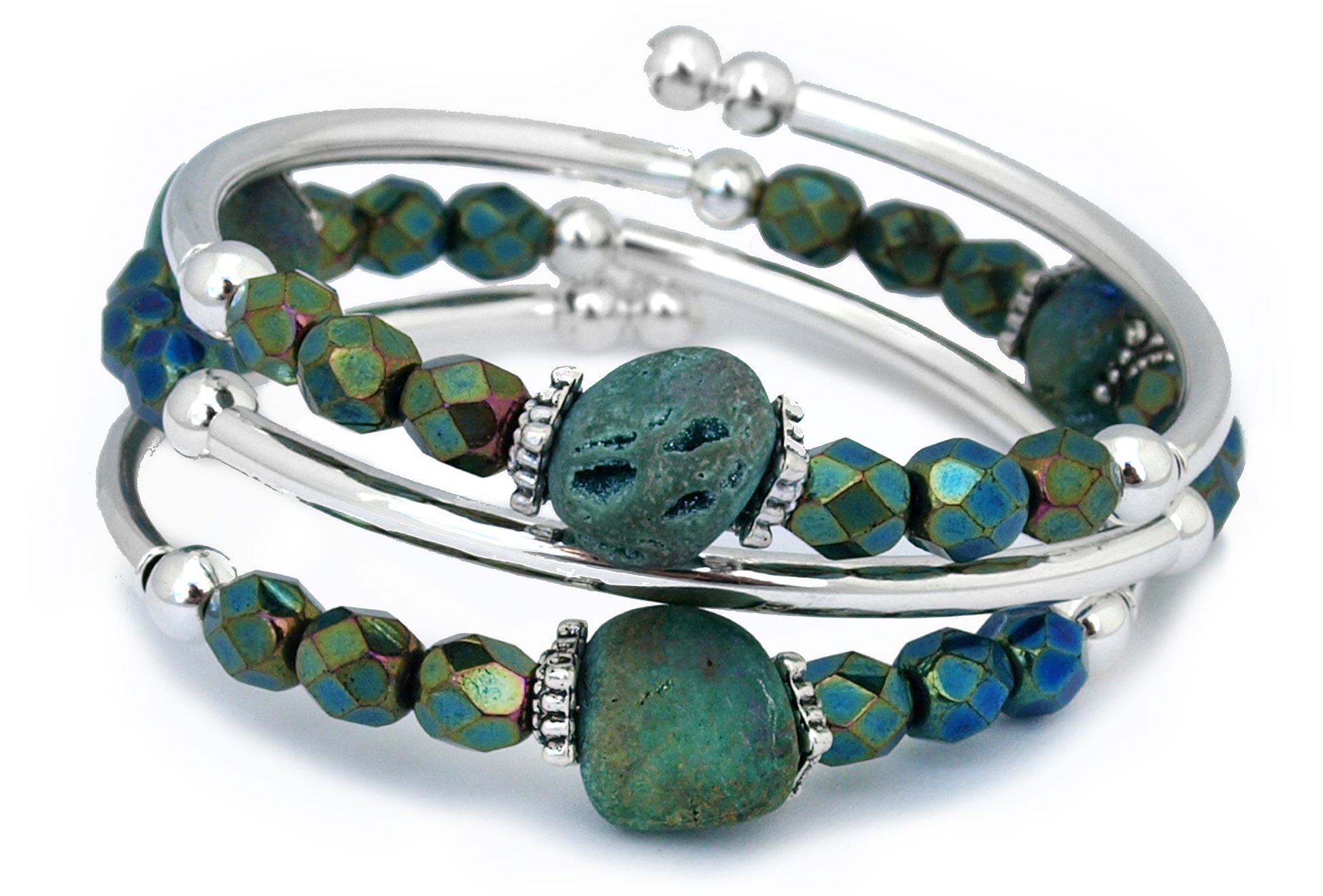 Our metal components are silver plated base metal that purposely does not contain lead, nickel, or cadmium. The beaded components range from glass to pearls, to semi precious gemstones and shells, to wood and nuts.
